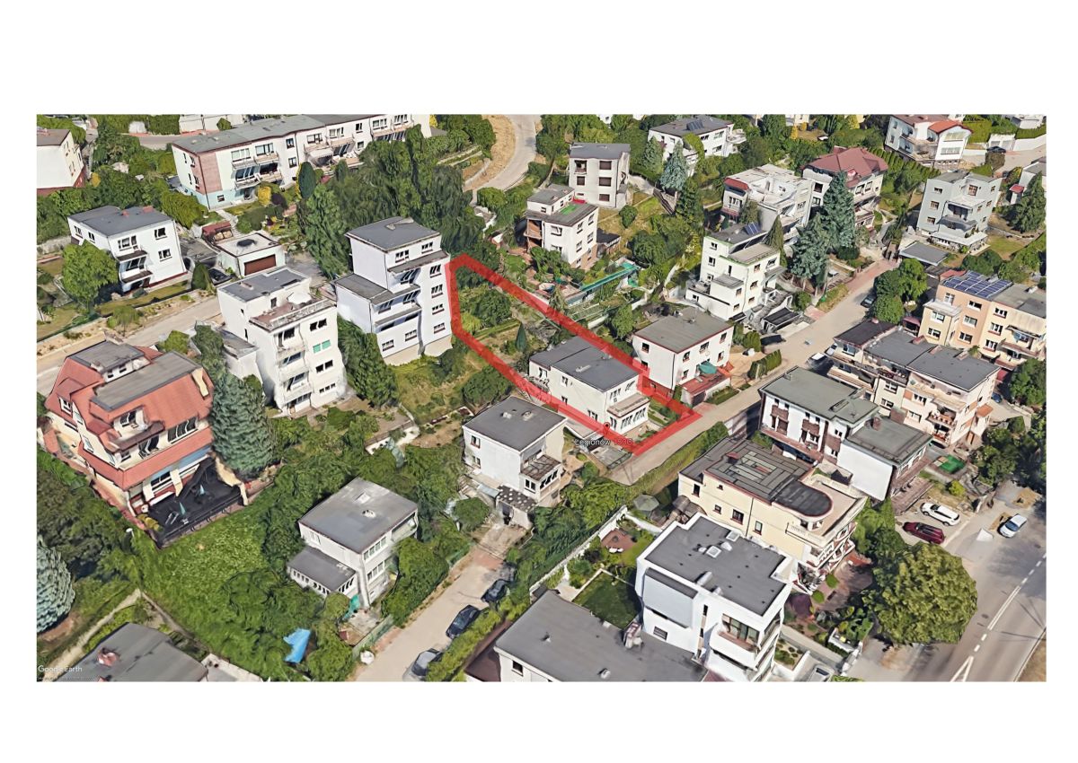 Powierzchnia działki: 637m2, korzystny kształt, spadek terenu w kierunku południowo-zachodnim (różnica poziomów ok. 12 m)