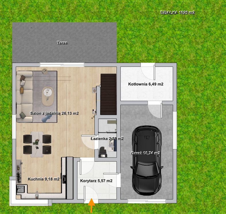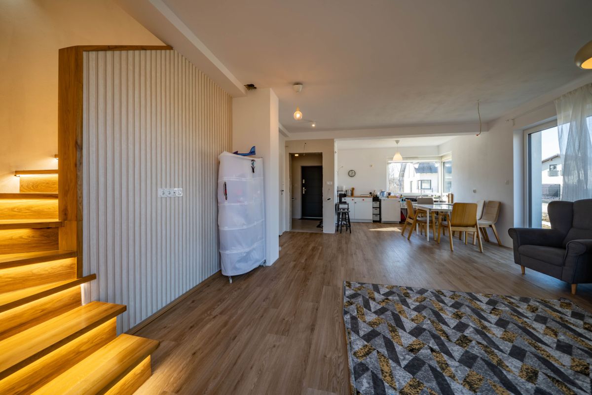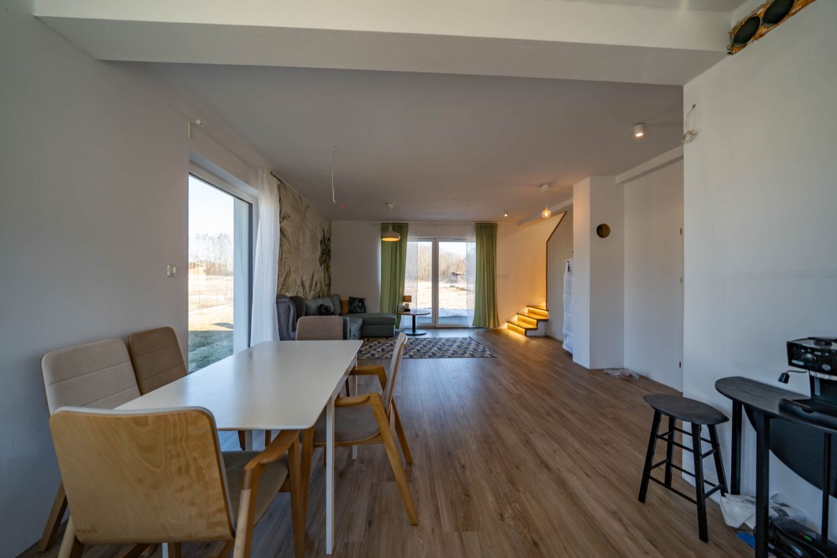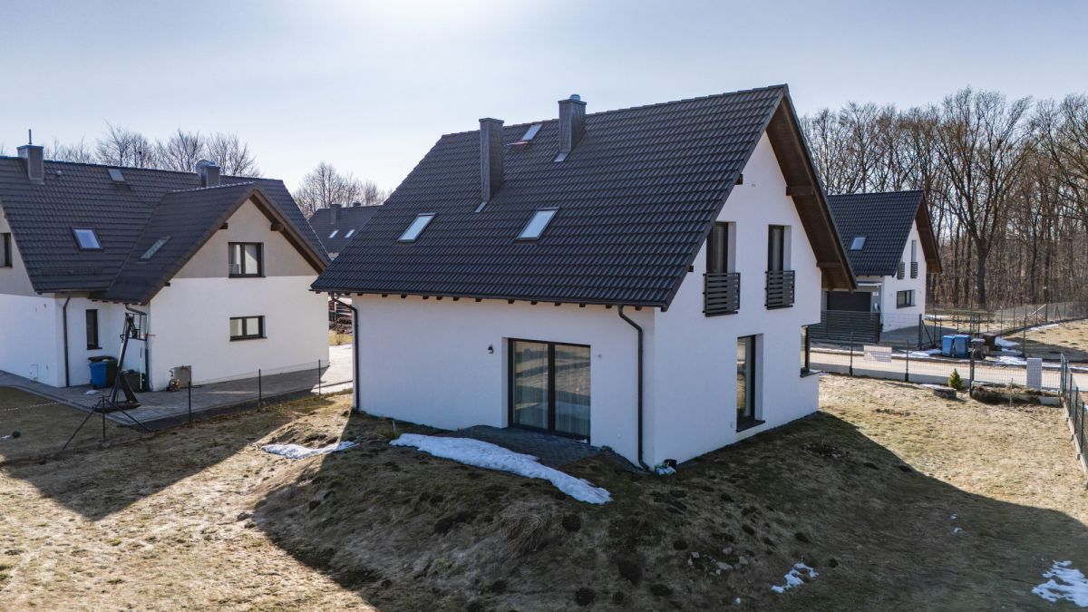 Budynek wykonany został w nowoczesnej technologii z pompą ciepła, z dbałością o jakość materiałów i funkcjonalny rozkład.