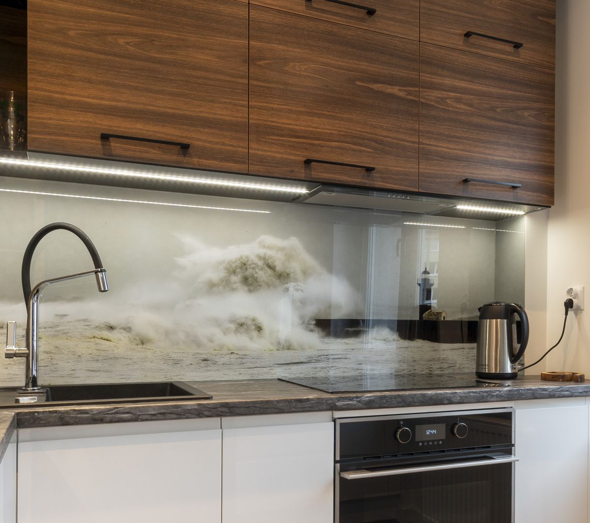 Kuchnia z meblami na zamówienie, sprzętem AGD w zabudowie i wygodną wyspą