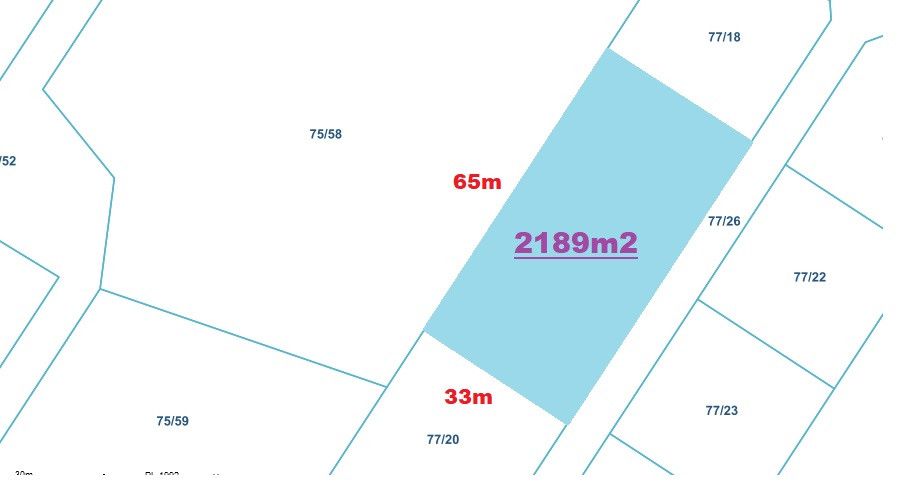Ukształtowanie terenu jest płaskie a działka swoim kształtem przedstawia prostokąt o wymiarach 65x34.