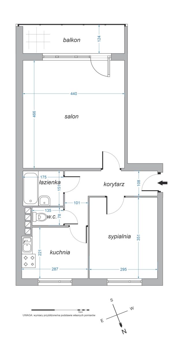 WC: 1,05 m² - oddzielne pomieszczenie, które zwiększa komfort mieszkania.