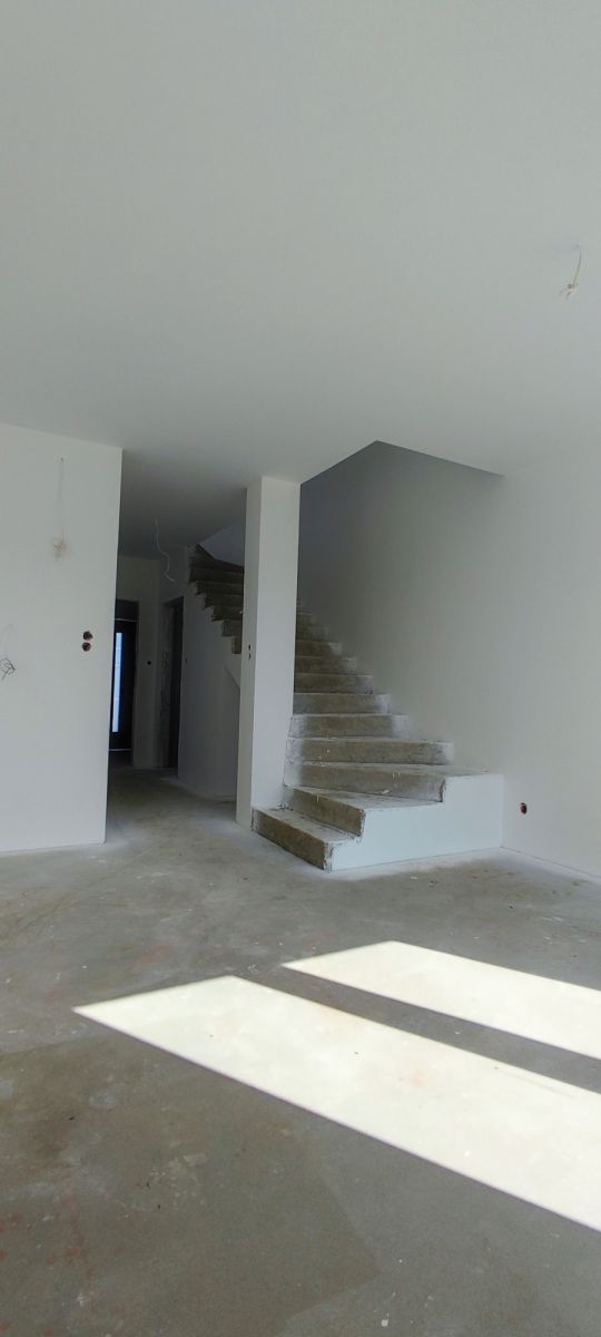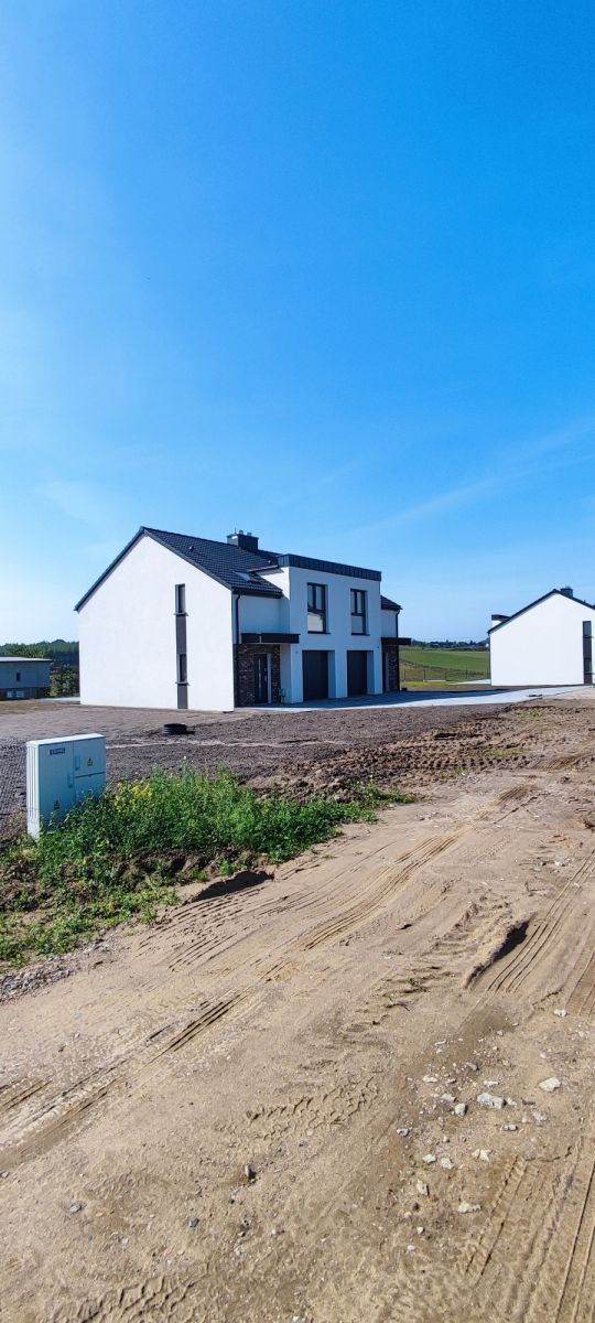 - Izolacja ścian fundamentowych (hydro styropian) oraz ocieplenie elewacji (styropian 20 cm), gwarantująca efektywność energetyczną budynku.
