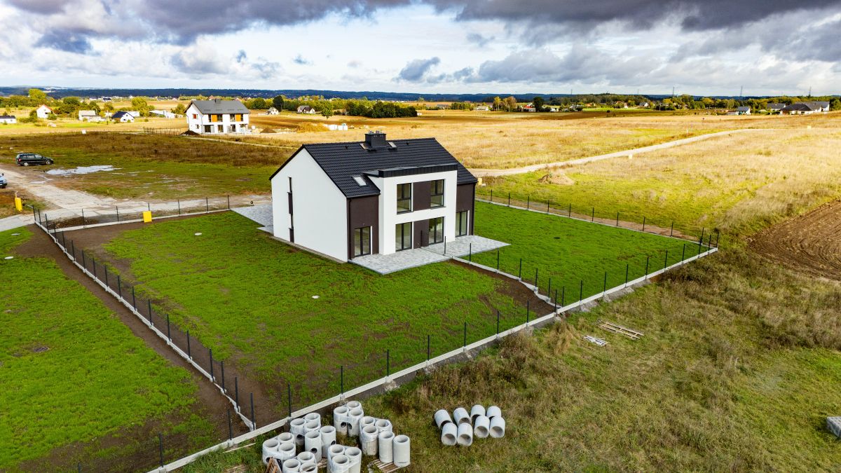 - W części ogrodowej został starannie nawieziony żyzny czarnoziem, który zapewnia doskonałe warunki dla roślinności. Cała powierzchnia ogrodu została obsiana wysokiej jakości trawą, tworząc piękną, zieloną przestrzeń